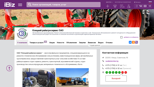 | AI-анализ | The portal raskletsk.ibiz.by is a multi-profile enterprise specializing in the repair and technical maintenance of agricultural equipment, livestock farms, automobile cargo transportation, and transportation services for the rural sector. The organization includes a service and repair department, transportation department, agricultural chemical department, production department of agricultural products, and material and technical support department. The main areas of activity for the enterprise include the production and sale of livestock and crop products, cargo transportation, repair of agricultural machinery and equipment, manufacturing of spare parts for agricultural machinery, technical maintenance of agricultural objects, and the sale and application of fertilizers, lime materials, and other agricultural chemicals. |
