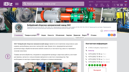 | AI-анализ | --- This website represents Bobruisk Mechanical and Assembly Plant ZAO, a manufacturer of various types of pumps (NK, TKA, NKV, NPS) and agricultural loaders (ZS10B, ZSK-15B, ZSK-20). The company also produces gears and spare parts for both domestic and imported agricultural machinery. In addition, the plant offers metalworking services, including ferring, turning, milling, and grinding. The product range includes centrifugal pumps, agricultural loaders, gears, and spare parts for agricultural machinery. The website provides no contact information or location details. |