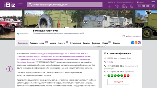 | AI-анализ | The portal bsk.ibiz.by is a government-authorized organization, Belспецkontrakt RUP, responsible for the sale of released material resources from the Belarusian military and other military formations and organizations. The website provides information on their location and contact details, including an address in Minsk, Kazintsa 2-602, as well as various offerings of equipment and services, such as aviation equipment, automobile special technology, vehicle equipment and parts, military technology, military cargo vehicles, military vehicle special technology, military uniforms, navigation equipment, fuel materials, construction equipment for wholesale, sale of construction technology, and special technical equipment. The website also features a map for visitors to find their way, as well as conditions for usage. |