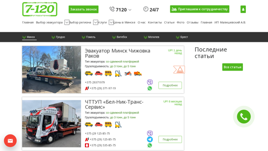 | SEO-описание | Спешите заказать эвакуатор по короткому номеру 7120 на сайте автопомощи 7-120.BY. Звоните или пишите в группу Vider по номерам +375 (44) 7-653-733 (Velcom) и +375 (33) 3-653-733 (МТС). |