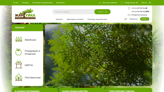 | AI-анализ | The portal "Жартуйка" is a plant nursery specializing in the sale of decorative garden plants. The assortment includes a wide range of decorative fruit and shrubs, conifers, perennials, bulbs, and annual flowers. Clients include both individual customers and landscape designers, gardening centers, and farmers. Key advantages include on-time delivery, low prices, pleasant prices, and delivery to the customer's region. The organization operates officially and has a good reputation. Popular items include Ayansky elm, common juniper, Himalayan pine, and Arnold pine. The company is registered as OOO "ЖарТуйка" and is located at ul. Zharkovskogo 26, Kab. 83/3 in Homiel, Belarus. Bank account: BY48ALFA30122C |