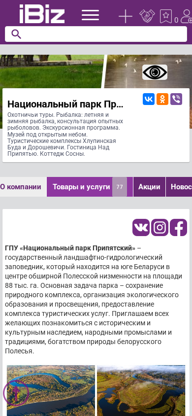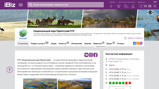 | AI-анализ | The web project "National Park Pripyatsky GPU - Hunting Tours. Fishing: summer and winter fishing, consultation by experienced fishermen. Excursion program. Open-air museum. Tourist complexes Hlupynskaya Buda and Doroshevichi. Gostinitsa Nad Pripyatymu. Cottage Sosny. . 247946, Liascovichi ag., Sashi Glushko, 7a" is a website for a national park in Belarus that offers hunting and fishing tours, as well as excursions and accommodation. The park covers an area of 88,000 hectares and aims to preserve the natural complex and provide tourist services. It offers fishing in both summer and winter, with consultation from experienced fishermen. There is also an excursion program and visits to open-air museums |