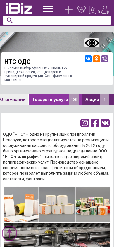 | AI-анализ | The website "NTS ODO" is a retail business specializing in the sale of office supplies, school items, and souvenir merchandise. The company operates a network of chain stores. The address of one of the stores is given as ul. Hutorianskogo 35A, GoMEL, Belarus. The website contains sections for buying and selling, company news, and job vacancies, as well as customer reviews on social media platforms. The company's main product and service offerings include flexography, thermochrome label production, digital printing, and finishing services. The company "NTS ODO" is a large enterprise in Belarus that specializes in the sale and maintenance of cash registers. In 2012, a structural division called "NTS-poligrafia" was established to provide a wide range of printing services. The production facility is equipped with |