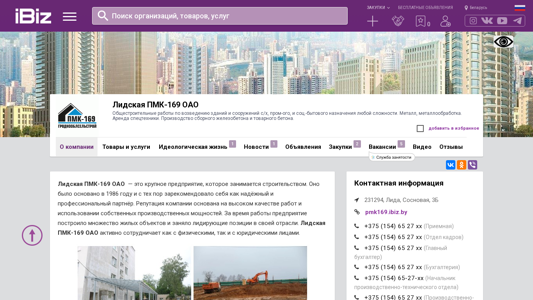 | AI-анализ | This online resource is dedicated to Limydskaya PMK-169 OAO, a construction company based in Lida, Belarus. The company specializes in the construction of agricultural, industrial, and social-residential buildings and structures of any complexity. They offer metal fabrication and processing, equipment rental, and the production of precast concrete and ready-mixed concrete. The website provides information about the company, its services, and contact details. Keywords associated with the website include construction services, metals, metalworking, equipment rental, and precast concrete production. |