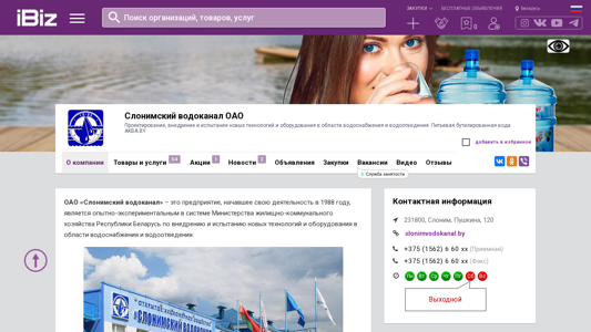| Canonical URL | https://slonimvodokanal.ibiz.by |