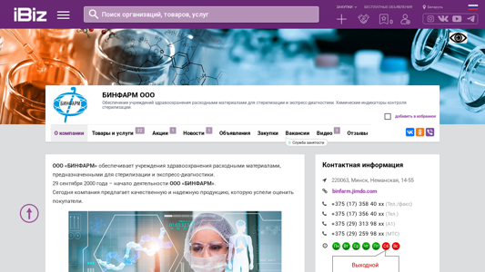 | Название / Заголовок | БИНФАРМ ООО - Обеспечение учреждений здравоохранения расходными материалами для стерилизации и экспресс-диагностики. Химические индикаторы контроля стерилизации.. 220063, Минск, , Неманская, 14-55 |