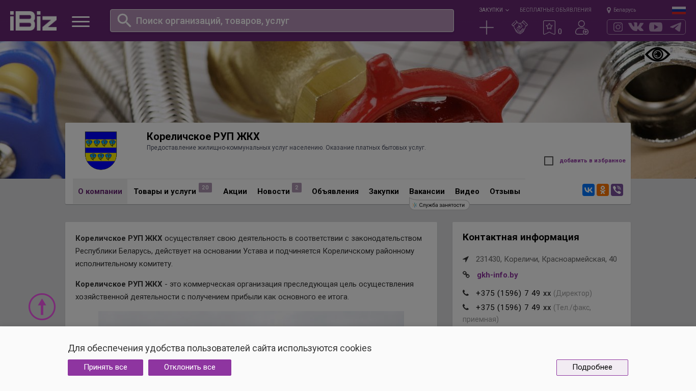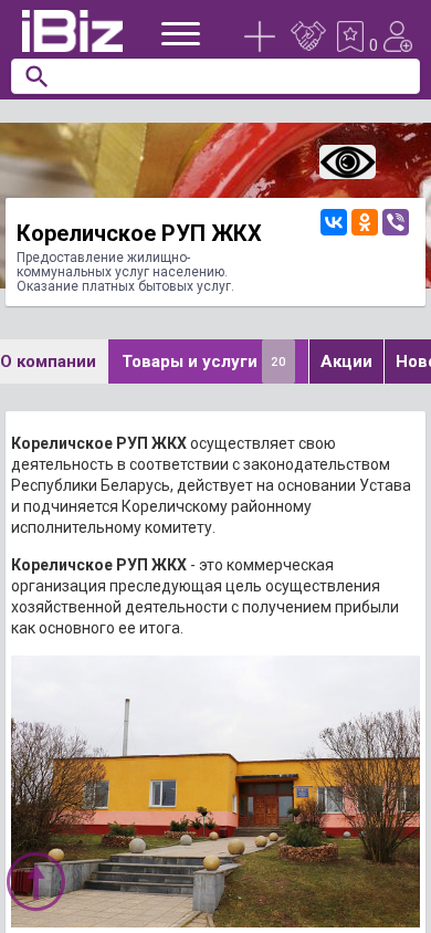 | AI-анализ | <-- The web project "Korelichskoe RUP ZhKH" is a Belarusian commercial organization providing residential and communal services to the population, offering paid household services in the towns of Korelichi, Mir and the district. The company operates according to Belarusian legislation, adhering to its charter and reporting to the Korelichsky district executive committee. The business activities encompass a full range of quality residential and communal services, including a residential services department, utility services department, housing repairs, and heating and water supply networks. The enterprise includes 18 boiler houses (12 of which are located in rural areas), a water and sewage system, transportation, cargo transportation, crane services, excavator services, landscaping and sanitation, a hotel, and a bathhouse. The hotel "Korelichi" is a three-story building located |