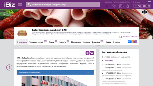 | AI-анализ | The website is a Belarusian meat processing plant, Bobruysky Mysokombinat OAO, producing and selling various meat and meat products. The plant offers a wide range of sausages, including boiled, smoked, and half-smoked sausages, as well as meat on the bone, sub-products, and edible fats. The company also produces half-finished meat products from beef and pork. The website contains contact information, including phone numbers and email addresses, for the company's trading unit, Torgovoy Dom "Tsymus," and the meat processing complex. The company aims to be one of the best in the industry by consistently following its principles and traditions of producing high-quality products and offering a wide selection of sausages and meat products. |