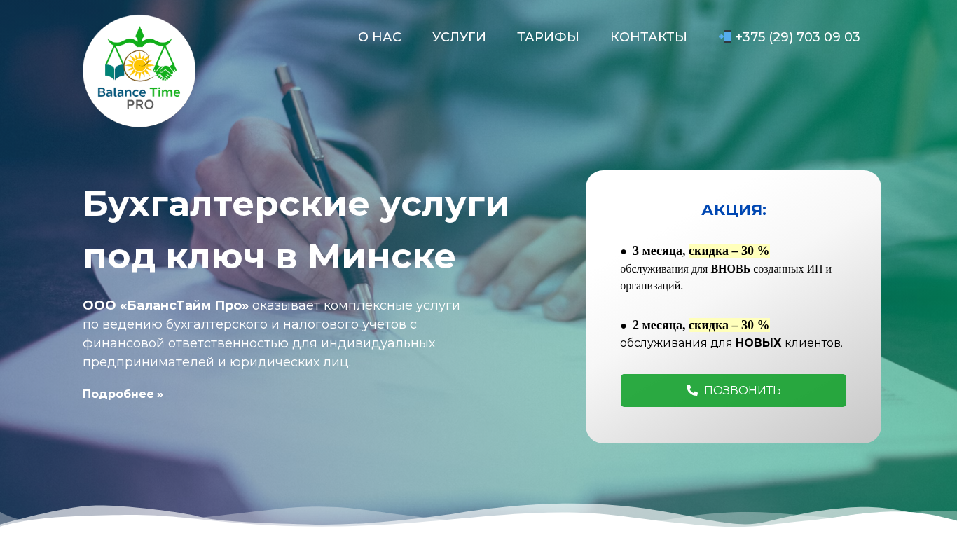 | SEO-описание | Комплексные бухгалтерские услуги в Минске для юр. лиц и ИП. Мы специализируемся на аутсорсинге бухгалтерии, налоговом и управленческом учётах. |