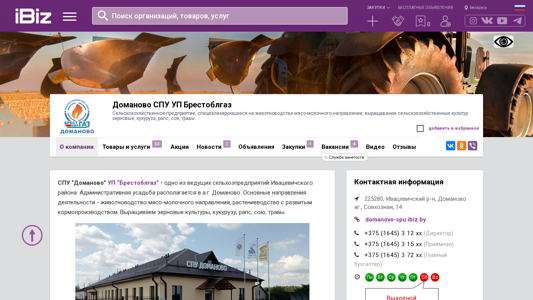 | AI-анализ | The portal is a farming enterprise, Domanovo SPU UP Brestoblgas, specializing in livestock farming with a focus on meat and dairy production, as well as crop cultivation, including cereals, corn, rapeseed, soybeans, and grasses. The enterprise is located in the village of Domanovo, Sovkhzhnaya 14. The company offers free classified ads for purchases. It produces and sells beef, grain, soy, legume crops, rapeseed, and feed for agricultural animals. The farm boasts a modern management team, a well-equipped material and technical base, a large transport fleet, and efficient production processes, resulting in high-quality agricultural products and competitive prices. The farm includes a combined feed mill, a grain drying complex, a rape oil extraction line, a milk processing plant, and two livestock farms. |