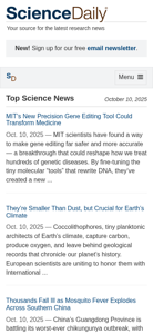 | SEO-описание | Breaking science news and articles on global warming, extrasolar planets, stem cells, bird flu, autism, nanotechnology, dinosaurs, evolution -- the latest discoveries in astronomy, anthropology, biology, chemistry, climate & environment, computers, engineering, health & medicine, math, physics, psychology, technology, and more -- from the world's leading universities and research organizations. |