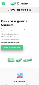 | SEO-описание | Нужны деньги в долг в Минске? Наш сервис по поиску займов поможет найти оптимальные условия. Без залога и поручителей, срочно. Получите до 17000 BYN за 30 минут. Заполните заявку на сайте уже сегодня! |
