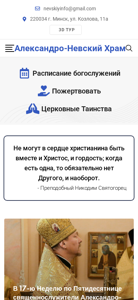 | AI-анализ | This online resource is a website dedicated to the Alexandro-Nevsky Church in Minsk, Belarus. The title and description of the website include repeated references to the church, its name, and its location in Minsk. Keywords associated with the website include words related to the church, its history, its clergy, and its various services and initiatives. The website also features contact information, including a physical address, email address, and phone number. The Alexandro-Nevsky Church is part of the Belarusian Orthodox Church and is located on ul. Kozlova in Minsk. The website provides information about the church's history, its clergy, various services and initiatives, and contact details. |
