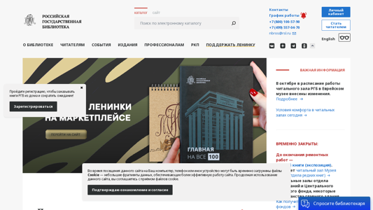 | AI-анализ | The web project "Российская государственная библиотека" (Russian State Library) provides information about the library's history, collections, projects, partnerships, documents, contacts, and services. The library has made changes to the working hours of its reading room in October, which can be found under the "События" (Events) section. Users can become readers, learn about the library, and access catalogs, electronic resources, and virtual reference services. The library also offers a café, information on how to register, and details on the hours of operation and how to order and receive publications. Reading rooms and various catalogs are also available. The library is involved in preserving and digitizing historical books and offers professional education and projects related to the library field. The library's publishing house, "Пашков доm," produces journals and bibliographic publications. The library also hosts |