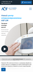 | SEO-описание | Клиника «AG Faber» работает по направлениям: стоматология высочайшего уровня, имплантология, челюстно-лицевая хирургия (ЧЛХ), пластическая хирургия лица и тела, оториноларингология (ЛОР), детская клиника «AGF Kinder» |