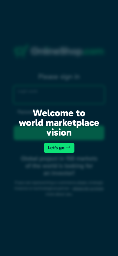 | AI-анализ | This online resource, titled "ONLINESHOP," is a global marketplace and project that welcomes visitors and encourages them to sign in. The description includes mentions of a code and password for accessing a login feature. The website is seeking an investor and caters to e-commerce players, strategic investors, and technological partners in 158 markets worldwide. |