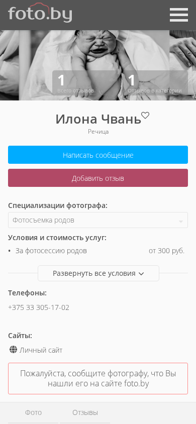 | AI-анализ | This website belongs to photographer Ilona Chvany from the city of Rechitsa in Belarus. The main focus of the site is on photographs in the category "Photo Shoots for Births." The photographer offers her services as a birth photographer in the city of Rechitsa. |