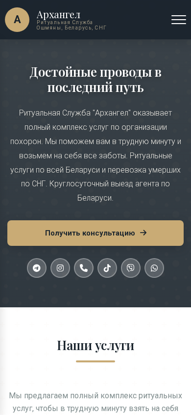 | Название / Заголовок | Ритуальная Служба "Архангел" - достойные проводы в последний путь. Ошмяны, Гольшаны, Минск, Беларусь. |