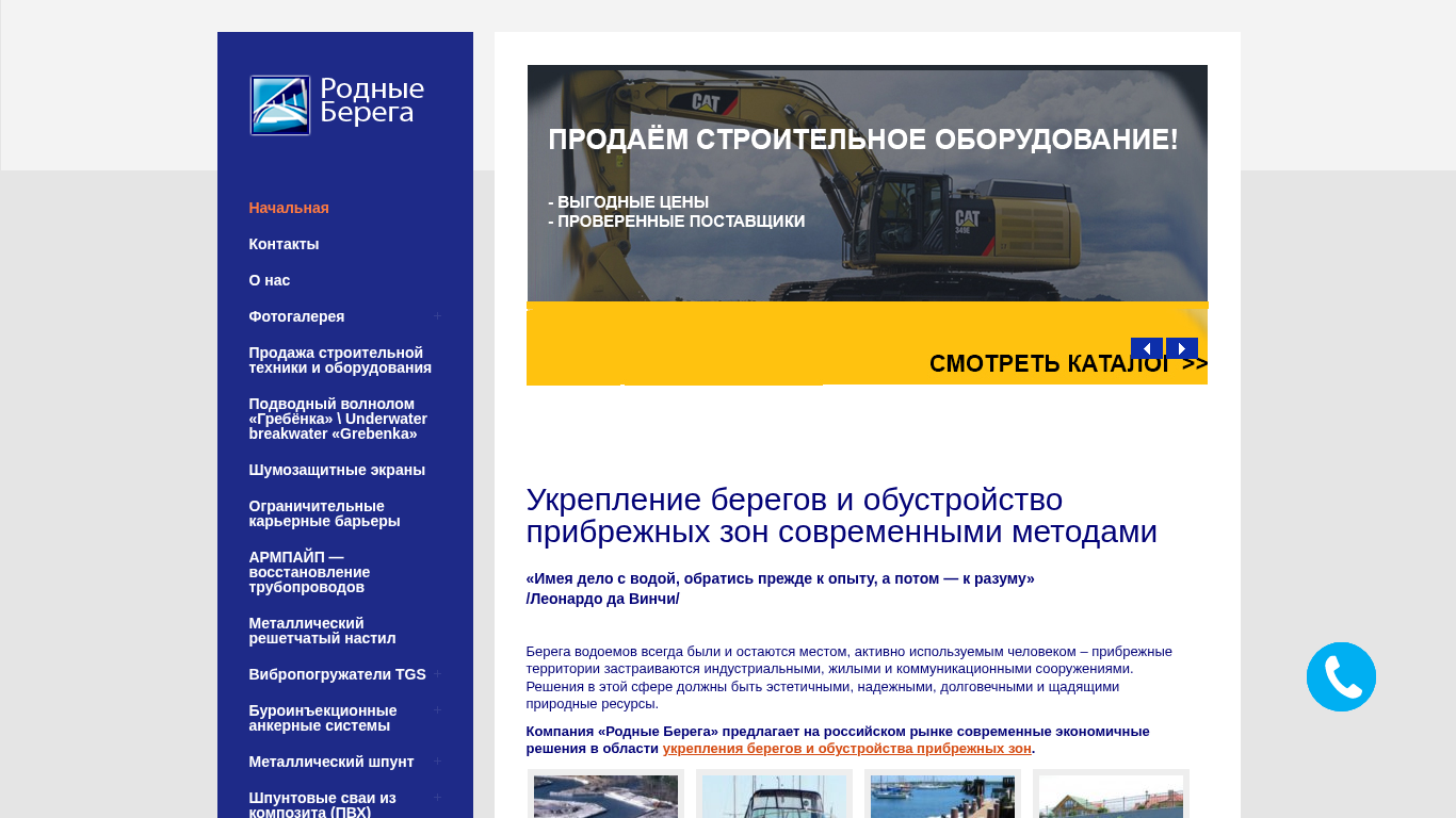 | AI-анализ | This website is for ООО Родные Берега, a company that sells construction equipment and underwater breakwaters. The main menu includes sections on contacts, about us, a photo gallery, videos, and product sales. The company offers underwater breakwalls, sound barriers, mine containment barriers, pipeline restoration, a metal grating walkway, and vibration pile drivers. They sell Atlas Copco equipment and offer underwater cleaning and submerged technical work. The website mentions composite materials, including composite piles, decking, and fenders. They also sell various types of mooring systems, including pneumatic anchors and chains. The domain is rosbereg.ru. |