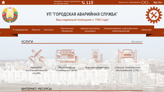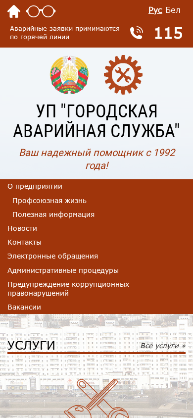 | SEO-описание | Сайт УП «Городская аварийная служба», наши услуги, контакты и обратная связь |