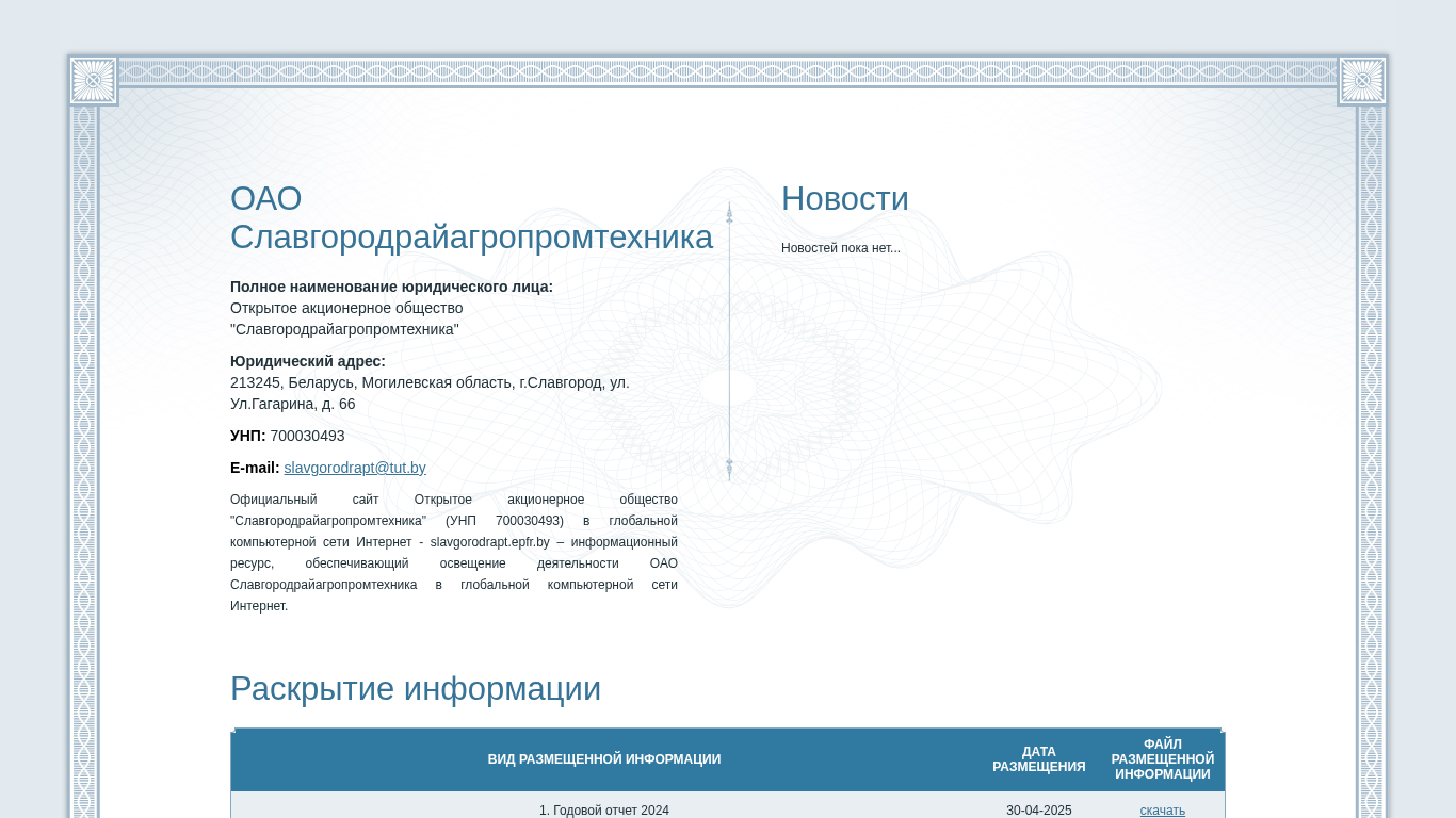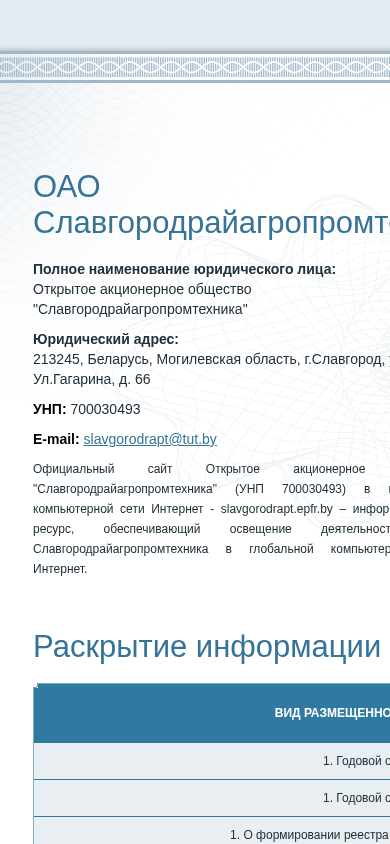 | Название / Заголовок | Славгородрайагропромтехника ОАО |