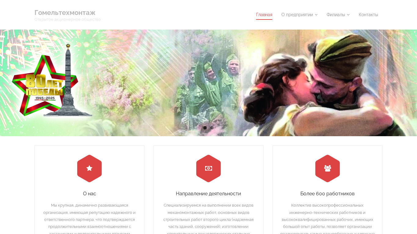| AI-анализ | The website is for Гомельтехмонтаж Open Joint Stock Company, a large and dynamically developing organization based in Belarus with a reputation as a reliable and responsible partner. The company specializes in the execution of all types of mechanical mounting works, main construction works of the second cycle (above-ground structures, buildings), the manufacture of building and technological steel structures, pipe joints, and non-standard equipment. With a workforce of over 600 highly professional engineering and technical personnel and skilled workers, the organization is capable of completing various and complex projects with a guarantee of quality and on time. The website contains sections on corporate anti-corruption measures, electronic applications, the trade union committee, and branches, including Svetlogorsk Montage Administration. The site also features a video about the collective of OAO "Gomeltechmontazh" and news items, including congr |