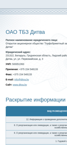 | Название / Заголовок | ТБЗ Дитва ОАО |