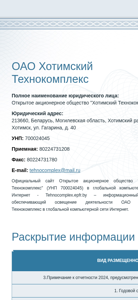 | Название / Заголовок | Хотимский Технокомплекс ОАО |