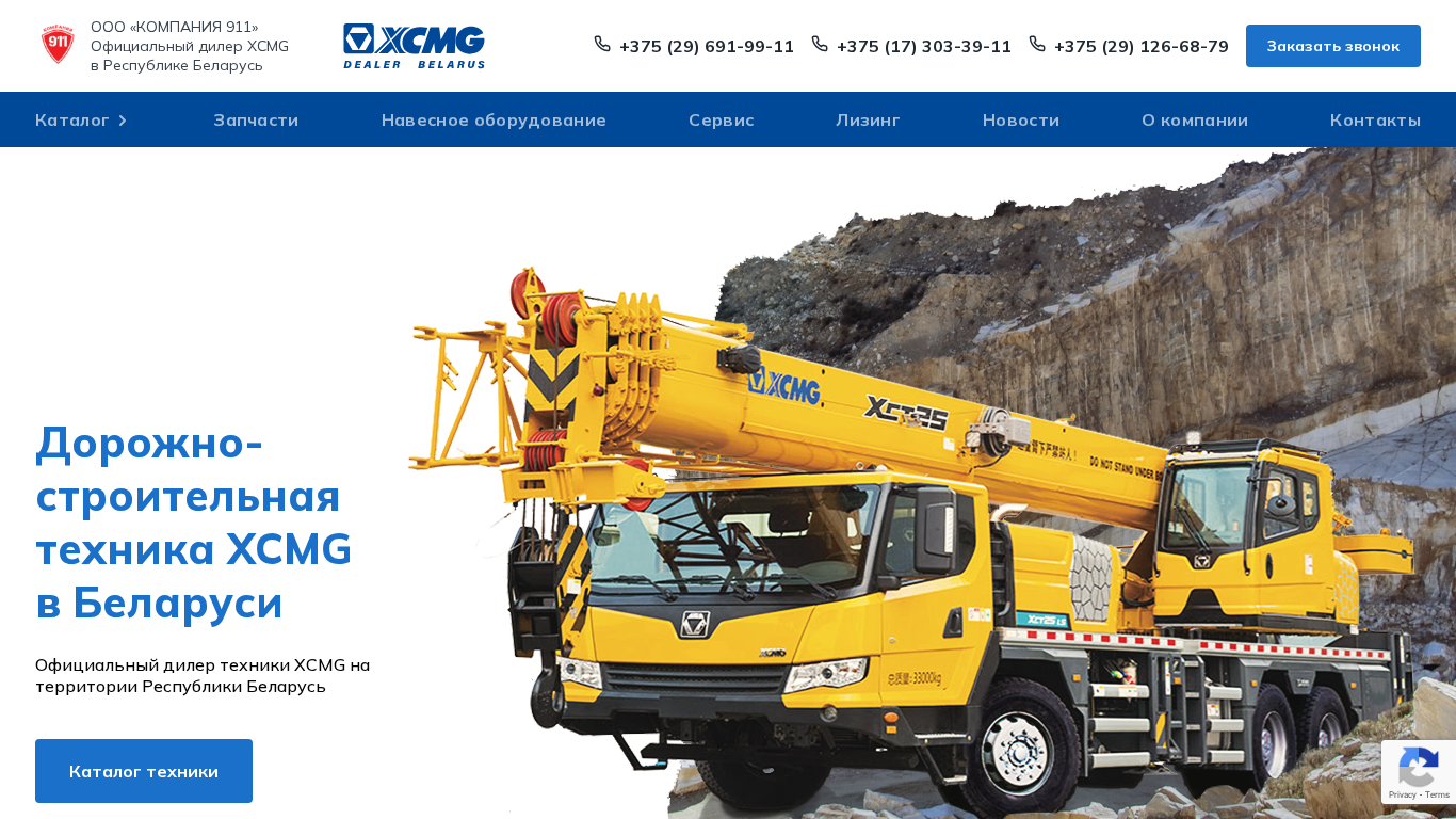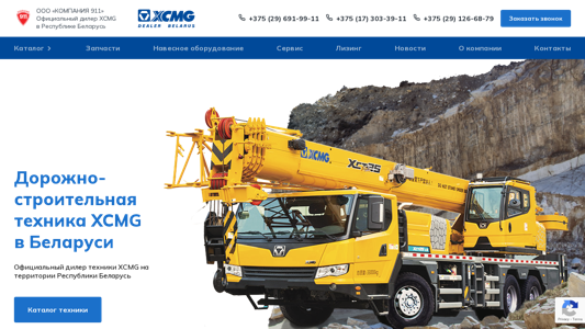 | AI-анализ | The website is the official dealership site for XCMG in Belarus, offering sales, service, and leasing of XCMG machinery. The company, 911, is the official dealer in the Republic of Belarus. Contact information includes three phone numbers and an option to request a call. The catalog includes various types of lifting cranes, trucks, crawler cranes, tower cranes, loading machines, front loaders, mini loaders, telehandler loaders, hydraulic vibrating rollers, mini rollers, mechanical vibrating rollers, pneumatic tire rollers, graders, asphalt pavers, excavators, mini excavators, trench rollers, stabilizers, drilling rigs, and hydraulic breakers. The site also offers spare parts, servicing, and leasing options. News and company information are also accessible, along |