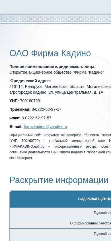 | SEO-лексика | скачать кадино годовой отчет фирма оао формировании реестра владельцев пароль e-mail информации ценных бумаг открытое акционерное общество адрес унп 700160729 |