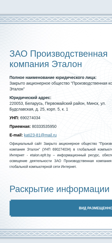 | SEO-лексика | производственная компания эталон зао пароль e-mail информации закрыто акционерное общество адрес унп 690274034 глобальной компьютерной сети интернет epfr размещенной зарегистрироваться |