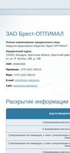 | Название / Заголовок | Брест-ОПТИМАЛ ЗАО |