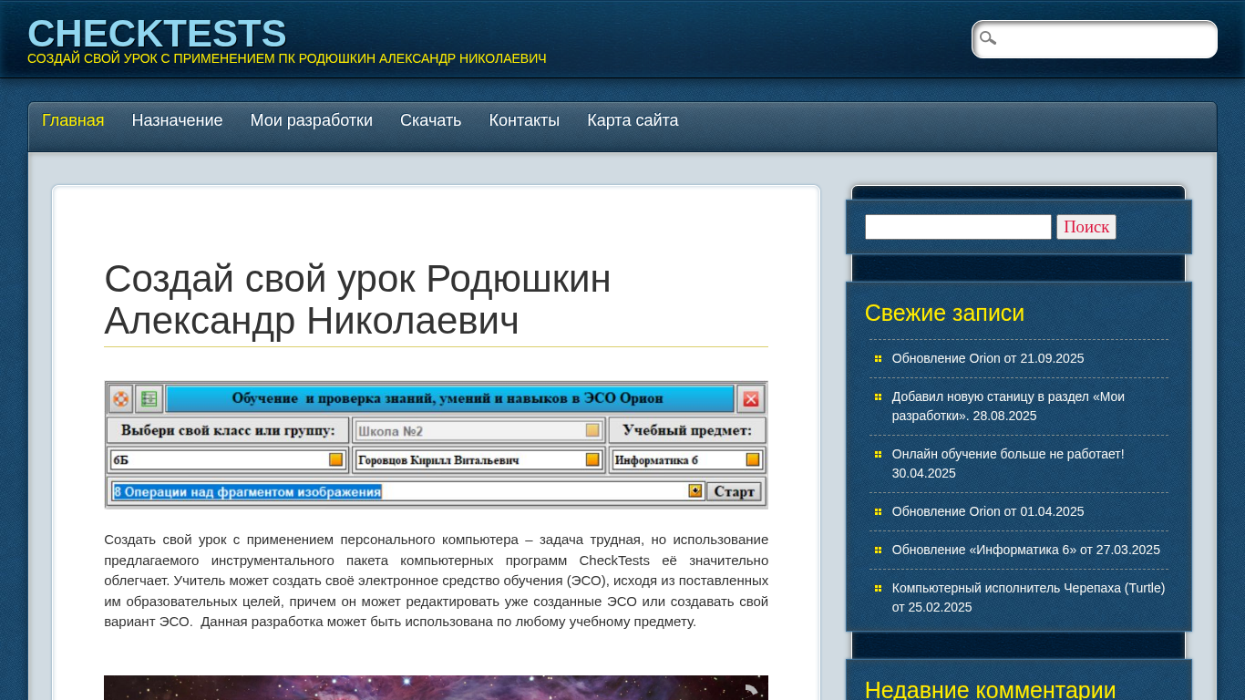 | Название / Заголовок | Создай свой урок Родюшкин Александр Николаевич |