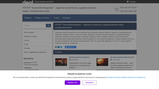 | AI-анализ | The website "ЧТПУП "ЭнергоМетИзделие"" is a Belarusian company specializing in the production of high-artistic metal products through artistic blacksmithing and plasma cutting. The company offers custom-made furniture such as chairs, tables, stairs, door and window grills, flags, and information signs, mailboxes, grills, benches, and flower pots. The website includes a designer who can help bring customers' ideas to life and a photo gallery showcasing their work. The company also provides articles on the magic of blacksmithing craft and the history of artistic blacksmithing. The contact information for the company is provided, located in the city of Goeme, Belarus, and their UNP number is 490563599. The website is not registered in the commercial or domestic services registry and was registered on January |