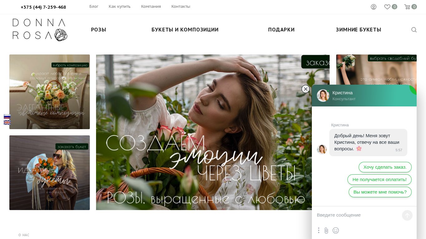 | Адрес | Заказать звонок, Задать вопрос, Войти, Корзина, 0, Отложенные, 0, info@donnarosa.by, г. Минск, ул. Сырокомли 38, Вконтакте |