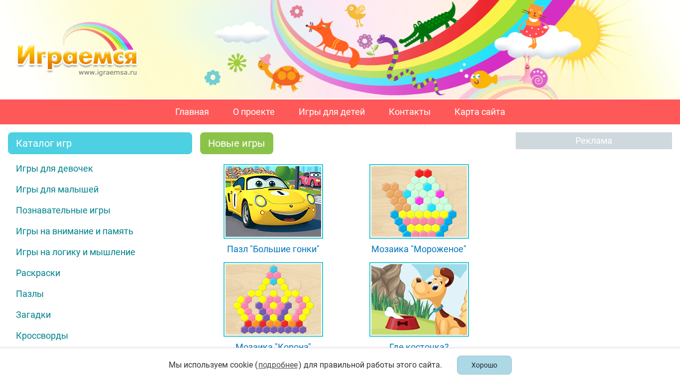 | SEO-описание | Детские развивающие игры, увлекательные задания, веселые раскраски, красочные пазлы, хитроумные ребусы, интересные загадки! Это и многое другое ждёт вас на детском игровом сайте Играемся! |