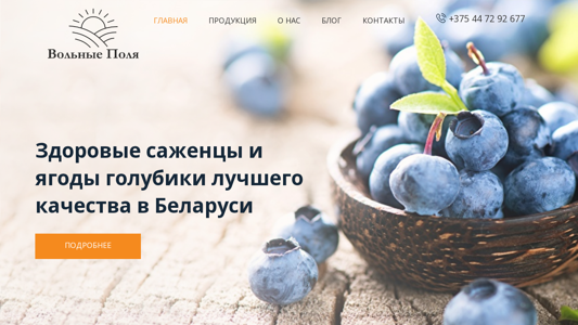 | SEO-описание | Вольные поля.Выращивание и продажа ягод и саженцев голубики. Отличное и стабильное качество.Голубика оптом |