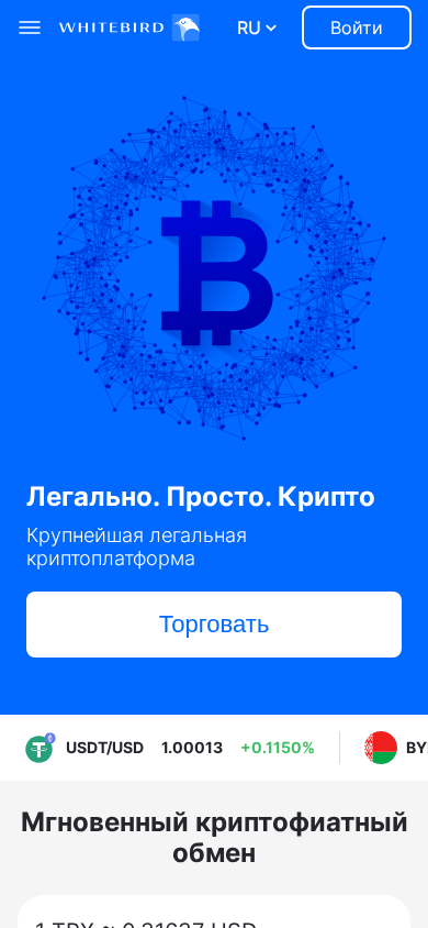 | SEO-описание | Покупка и продажа криптовалют онлайн: USDT, ETH, TRON, BTC, TON. Быстрые и безопасные транзакции. Whitebird.io |