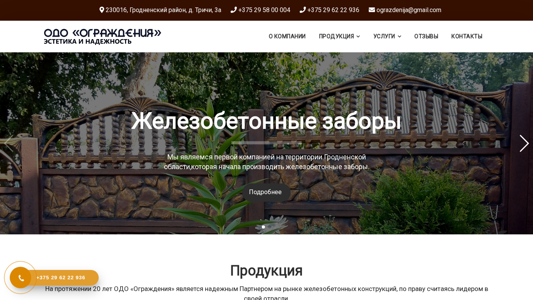 | AI-анализ | --- This online resource is a website for buying concrete fences in Grodno, Belarus. It offers delivery and installation of concrete fences throughout Belarus at low prices. The website mentions concrete slabs, columns, and other products. The main page is titled "Купить бетонный забор в Гродно" and has the keywords "ограждения", "ограждений", "наборные", "столбы", "бетонные", "изделия", "услуги", "подробнее", "конструкций", "под сетку", "шпалера для сада", "доставка", "монтаж", "спецтехники", "одо", "крышки", "продукция", "варианты", "узоров", "территории", and "огра |