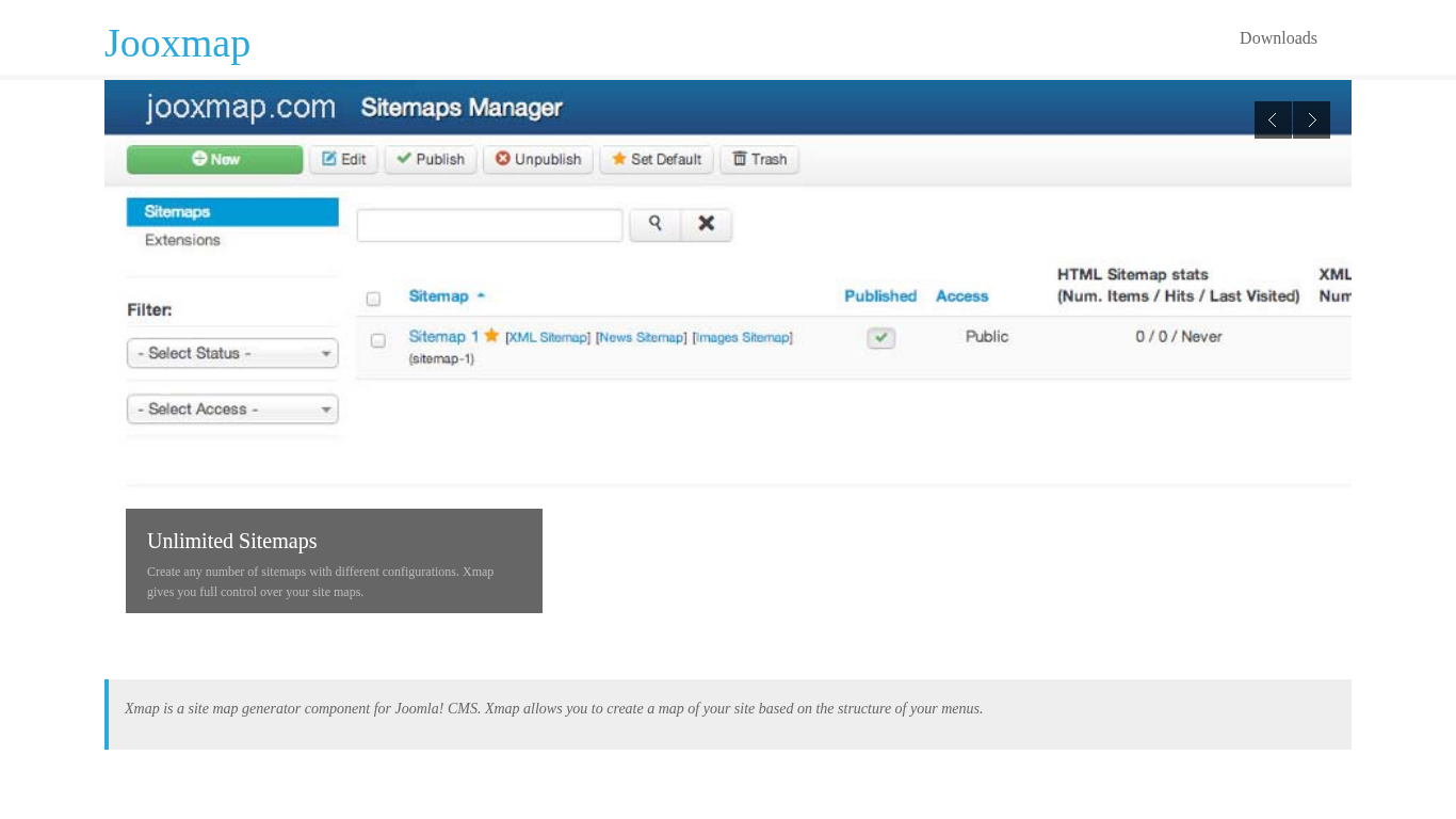 | AI-анализ | The portal JooxMap is an innovative location intelligence platform that offers advanced mapping solutions. It is a site map generator component for the Joomla! CMS, allowing users to create unlimited sitemaps with different configurations. Xmap, the component powering JooxMap, generates a site map based on the structure of menus, providing full control over site maps. It is easy to use, as users only need to enter a title and select menus for the site map. Xmap is the most popular site map generator for Joomla! since its launch in 2008 and comes with various customizable options for easier use. Xmap supports a large number of components and is constantly growing in capabilities. Users have praised Xmap for its quick creation and flawless functionality. |