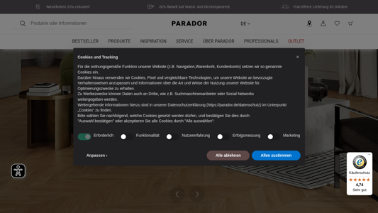 | SEO-описание | Parador, die führende globale Einrichtungsmarke, steht für klassische Designs mit höchsten Ansprüchen an Qualität und Nachhaltigkeit. Veredeln Sie Ihre Innenräume mit unseren Fußbodenbelägen, Wand- & Deckenlösungen sowie einer ausgewählten Auswahl an Zubehör, Pflegeprodukten und Wandfarben. Entdecken Sie unsere Kollektion und verwandeln Sie Ihren Raum noch heute! |
