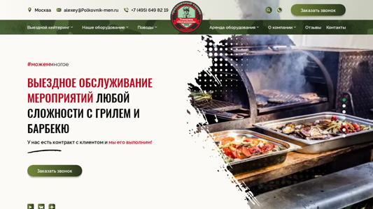 | AI-анализ | The website is dedicated to providing various catering services for events of any complexity in Moscow. The main offerings include outdoor catering, military catering, field kitchen, street food stations, and Russian catering. The website lists numerous food station options such as blini station, ponchik station, tea station, children's catering stations, and beverage bars. There are also mentions of BBQ catering, Eastern catering, and animatronic catering. The website provides contact information for booking and ordering services. The website's content is predominantly focused on food-related offerings and events. |
