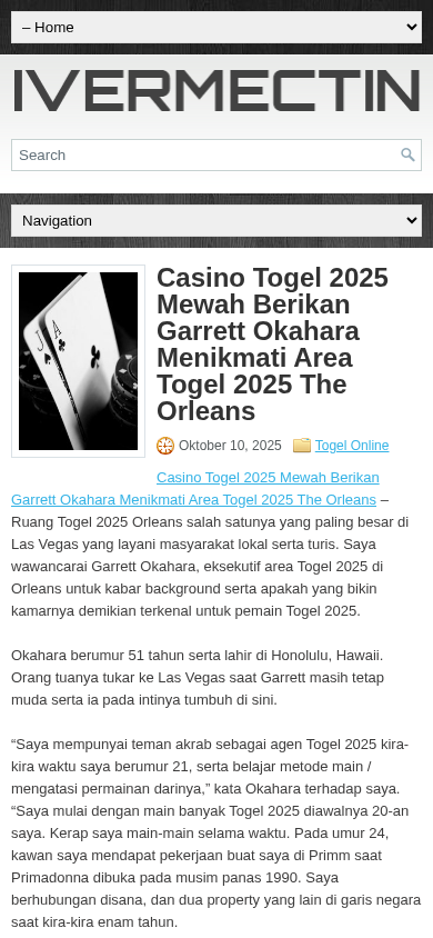 | AI-анализ | This website is a portal for discussions surrounding the best and most complete agen slot online in Indonesia. The title includes the keyword "Ivermectin" but its relevance to the website content is unclear. The description mentions "Berita Tempat Berdiskusi," which translates to "News Discussion Place." The keywords include "agen slot online," "paling lengkap dan terbaik," which means "most complete and best," and "Indonesia." The top words are primarily Indonesian language words, with "anda" translating to "you," "dengan" translating to "with," and "online" being a common term. The website structure includes sections for casino, poker, slot, and togel online. The text within the website discusses The Orleans Casino and Garrett Okahara, who is the executive area manager for Togel 2025 at |