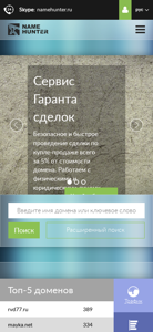 | Название / Заголовок | NameHunter.ru - домены на продажу. Крупнейшая площадка по купле-продаже доменных имен стран СНГ |