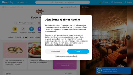 | AI-анализ | The portal hutorok-2.relax.by is a cafe website in Minsk, Belarus, located on Kazinca Street 2. The site provides reviews, address, phone numbers, working hours, and a map for Cafe Hutor. The menu, search functionality, favorites, login, bankquet halls in Minsk, error reporting, and all photos are accessible through the site. The cafe has 32 reviews with an average rating of 4.0. The New Year 2026 event is listed, along with information about the cafe, a photo gallery, and the menu and prices. The cafe's interior is described as cozy and homey, with a relaxed atmosphere. The cafe can accommodate various events such as weddings, birthdays, anniversaries, business meetings, corporate events, or casual gatherings. The cafe |