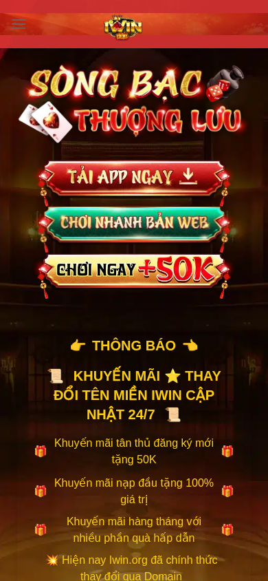 | SEO-описание | IWIN – Đỉnh cao của giới giải trí! Trải nghiệm sòng bạc hoàng gia, nơi hội tụ đẳng cấp và may mắn. Tải ngay IWIN Club trên APK, iOS để tận hưởng những ván bài đỉnh cao |