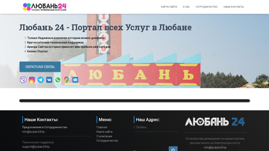 | AI-анализ | language: ru The portal Lyuban24 is a business directory and service provider for the city of Lyuban, Belarus. It offers verified companies and solutions for business promotion on its site. The portal includes a map of the site, information about the company, cooperation opportunities, and contacts for support and site rentals. The site operates 24/7 with technical support and is home to a business portal, only trustworthy companies are featured, and there is a reverse link feature for businesses interested in being listed. The site also offers a search function and can be contacted via email for inquiries about listing on the portal. The site has an informational character. |