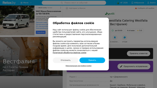 | SEO-описание | Кейтеринг от ресторана westfalia Catering Westfalia (Кейтеринг Вестфалия) в Минске – отзывы, телефоны, график работы и карта проезда на Relax.by |