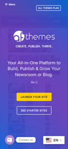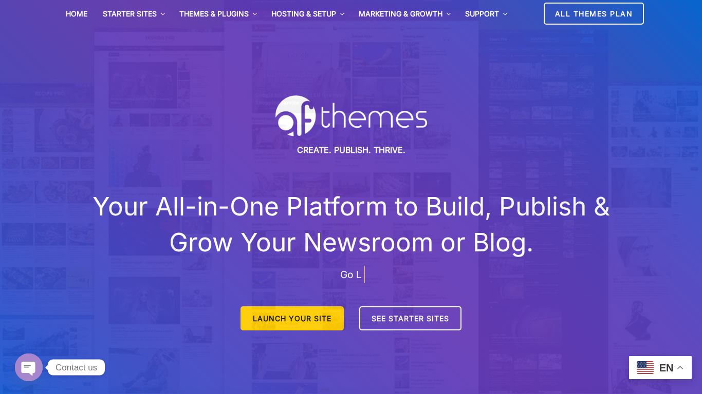 | AI-анализ | The web project "AF themes" is a platform for creating, publishing, and growing newsrooms and blogs. It offers various themes and plugins for WordPress sites. Users can browse and download demos, and choose from a range of premium and free themes. The site also provides hosting and setup services, as well as support for content and editorial strategy, SEO, social media, newsletter setup, monetization, and analytics. It claims to have over 1,000 ready-made starter sites, designed for news, magazines, and blogs, and promises mobile-friendliness, SEO optimization, and audience engagement. The site's design is clean and easy to navigate, with a clear call to action to "Go Launch Your Site" and a menu offering options for browsing demos, premium themes, and free themes, as well as information on plugins, hosting and setup, and support. Keywords associated with |