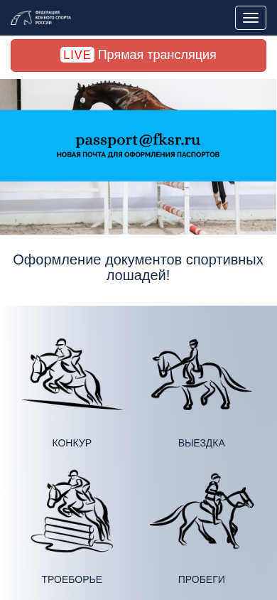 | AI-анализ | --- This online resource belongs to the Russian Equestrian Sports Federation (Федерация конного спорта России, ФКСР). The website provides information on the federation, its programs, events, and various services for sports trainers, officials, and horse owners. Keywords associated with the site include "ФКСР," "России," "приглашаем," "национальная программа," "аттестации," "тренеров," and "спортивных лошадей." The site features sections on rules and documents, veterinary services, and an anti-doping program. It also includes a calendar of upcoming events, a rating of riders in dressage competition, and contact information for various federation officials. The site includes sections on equestrian disciplines such as show jumping, eventing, driving, vaulting, and western riding. It also features a forum |